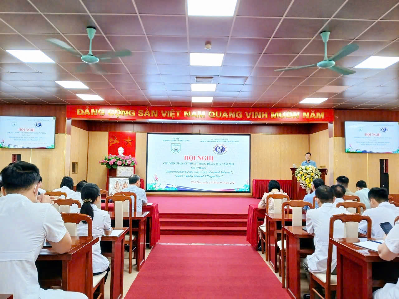 📣 Sáng ngày 10/9, Bệnh viện Y Dược cổ truyền và Phục hồi chức năng tỉnh Phú Thọ phối hợp Bệnh viện Châm cứu Trung ương tổ chức Hội nghị Chuyển giao kỹ thuật theo đề án 1816 năm 2024 hai gói kỹ thuật: “Điều trị và chăm sóc đau vùng cổ gáy, viêm quanh khớp vai” , “Điều trị liệt dây thần kinh VII ngoại biên”.